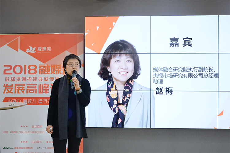 央視市場(chǎng)研究股份有限公司總經(jīng)理助理趙梅以互聯(lián)網(wǎng)傳播規(guī)律下的融合路徑——從模式到產(chǎn)品為主題進(jìn)行了分享。